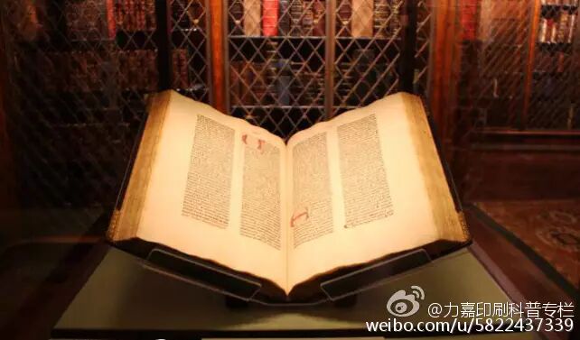 《42 行圣经》是《圣经》拉丁文公认翻译的印刷品,这个圣经是最著名的古版书,他的产生标志着西方图书批量生产的开始。据说一共有180个圣经被印刷出来,40本印刷在羊皮纸上,另外140本印刷在纸上。2003年,已知现存的谷登堡圣经包括11个羊皮纸上的完全拷贝,一个羊皮纸上的新约全书,48个基本完全的纸上的拷贝,还有一些零散的拷贝。